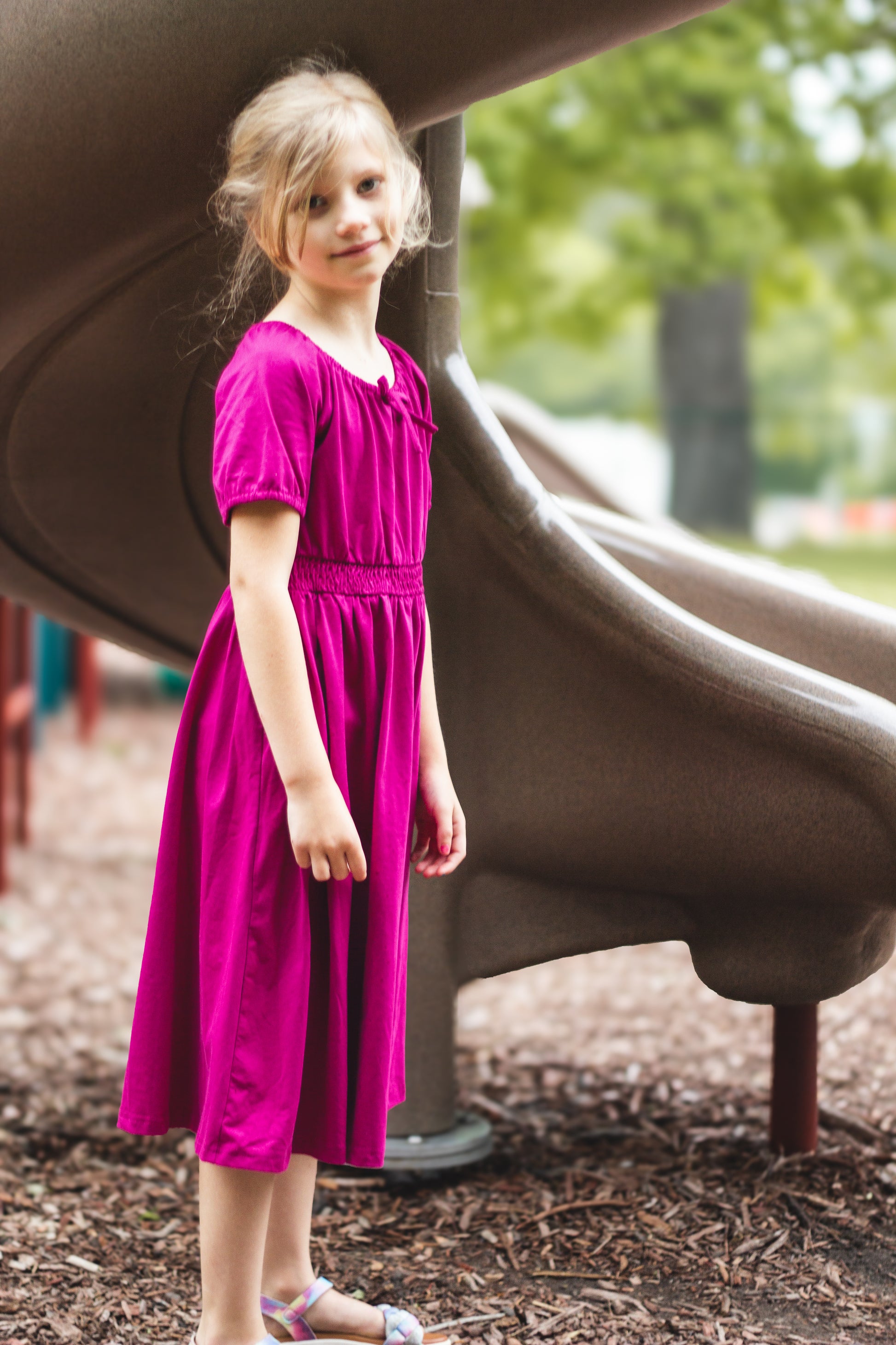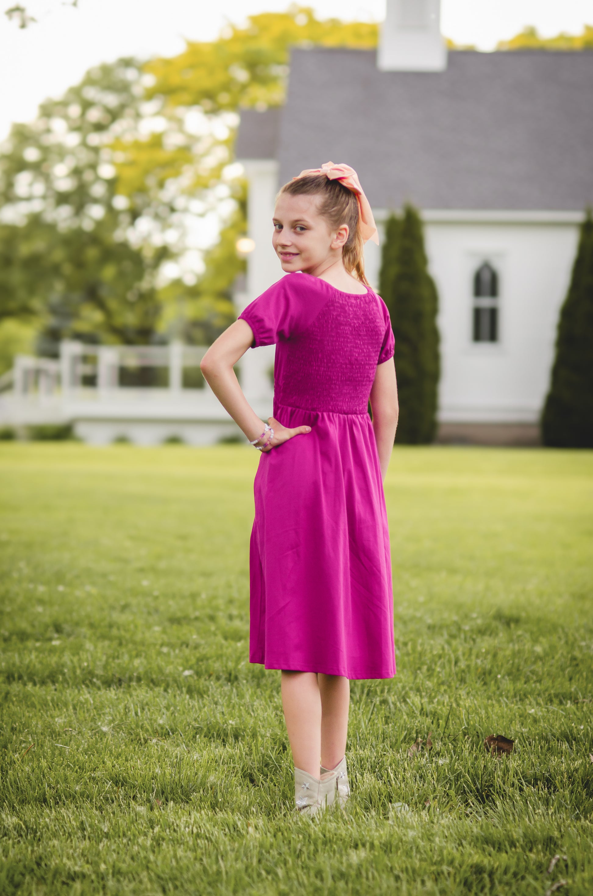 Your little girl will adore matching you with this delightful rich color and darling style!