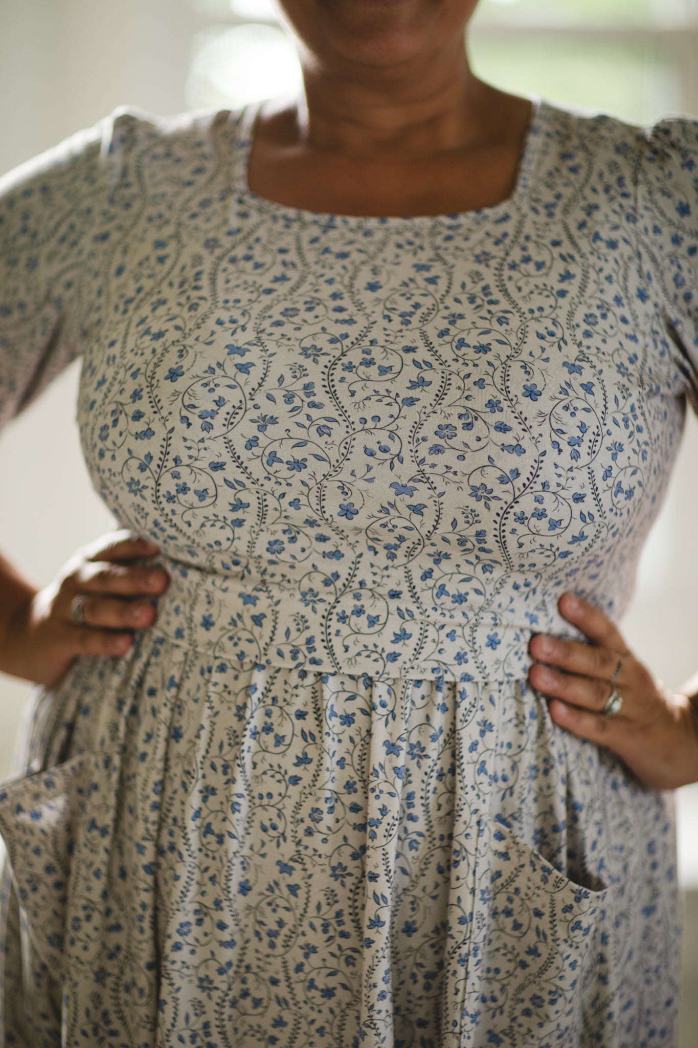 • Modest square neckline