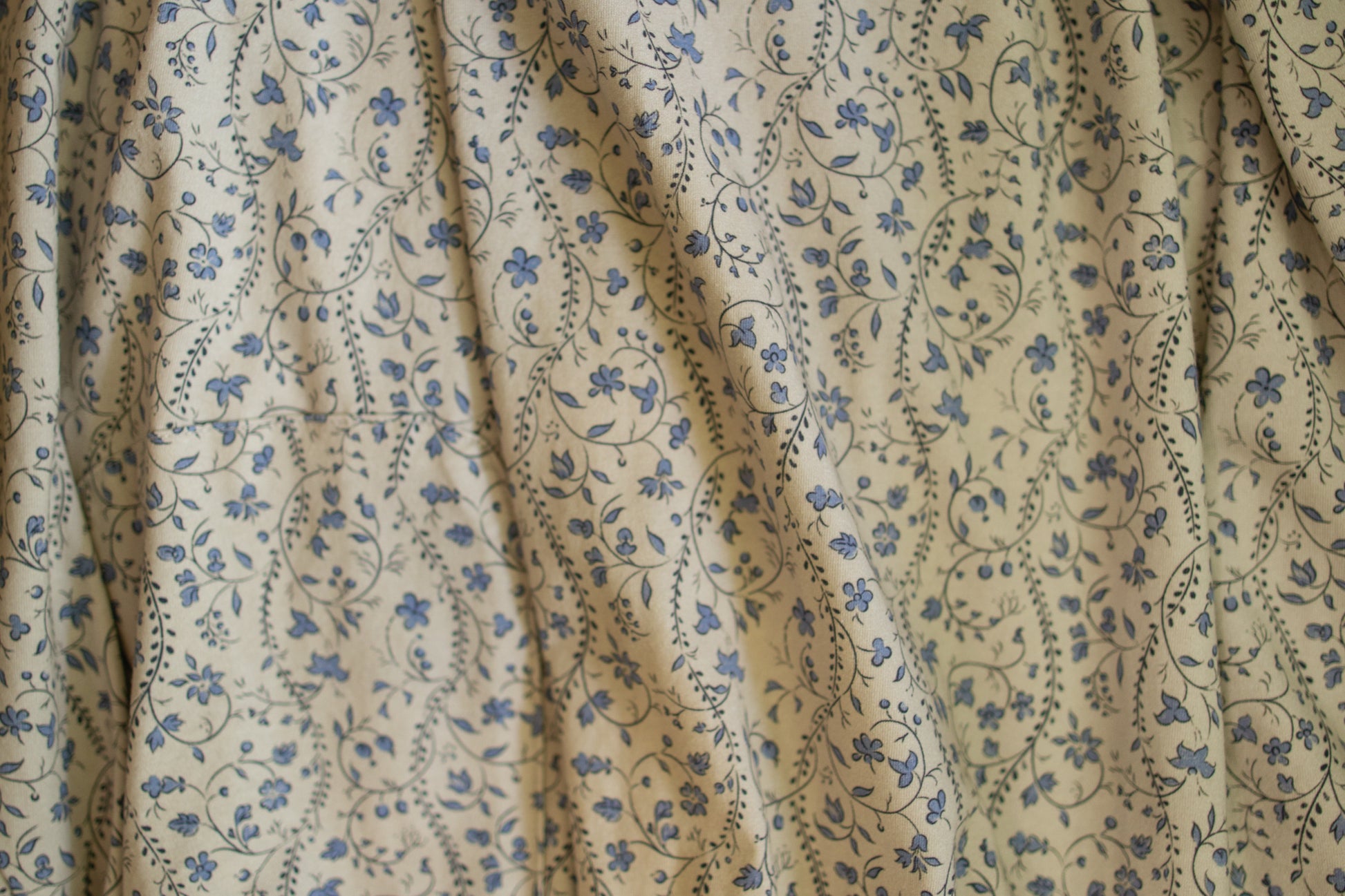 Soft, sweet, and quietly graceful - Dovewing Ivy is a breath of calm. 💆♀️ Scrolling vines and dainty blue blooms wind their way across a backdrop as soft and pewter-toned as a Mourning Dove, like something you’d find on vintage china or tucked inside a keepsake drawer. 🍶