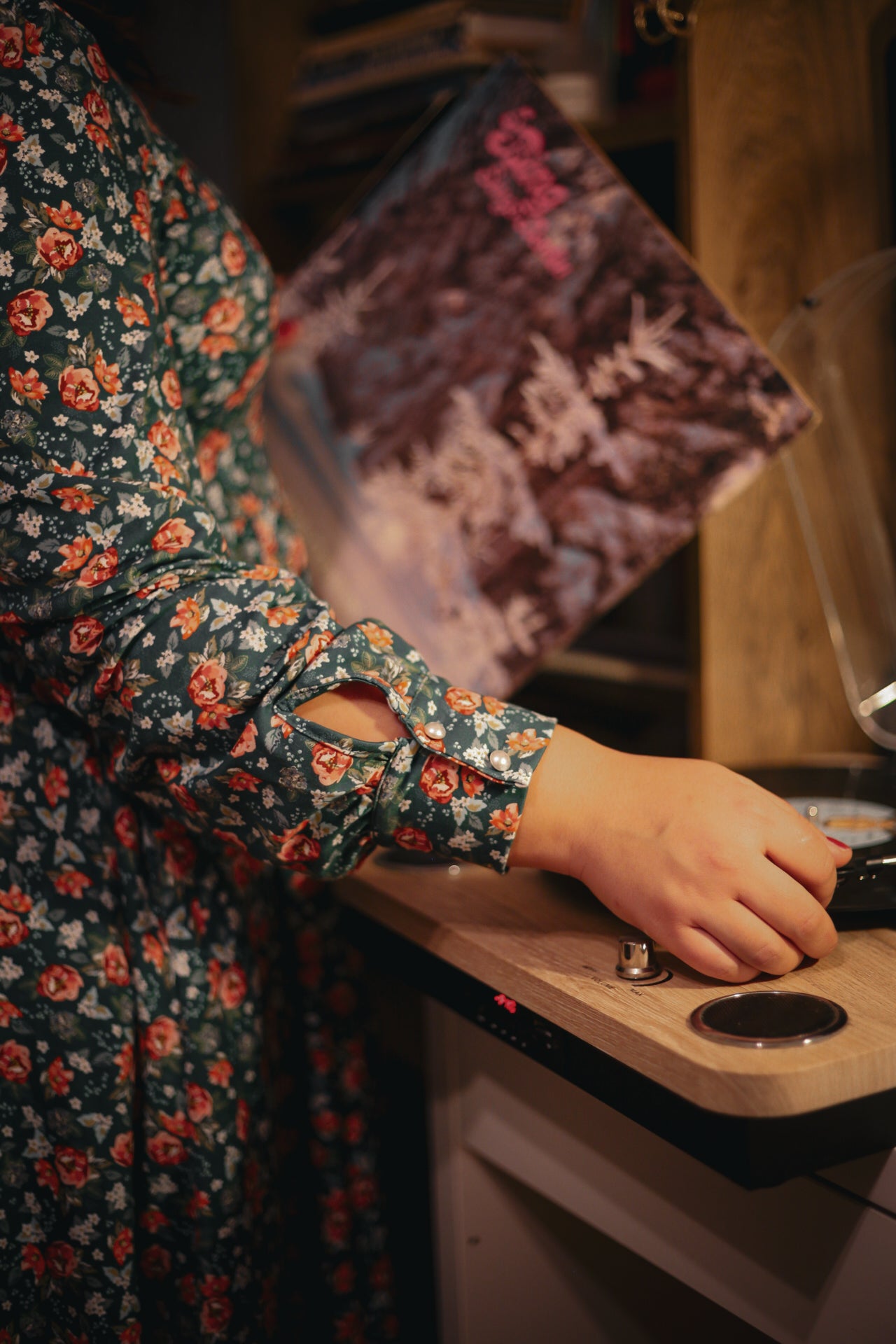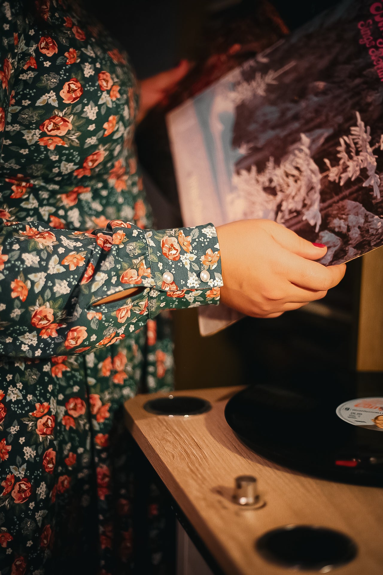 • Cuffed long sleeves with faux pearl buttons