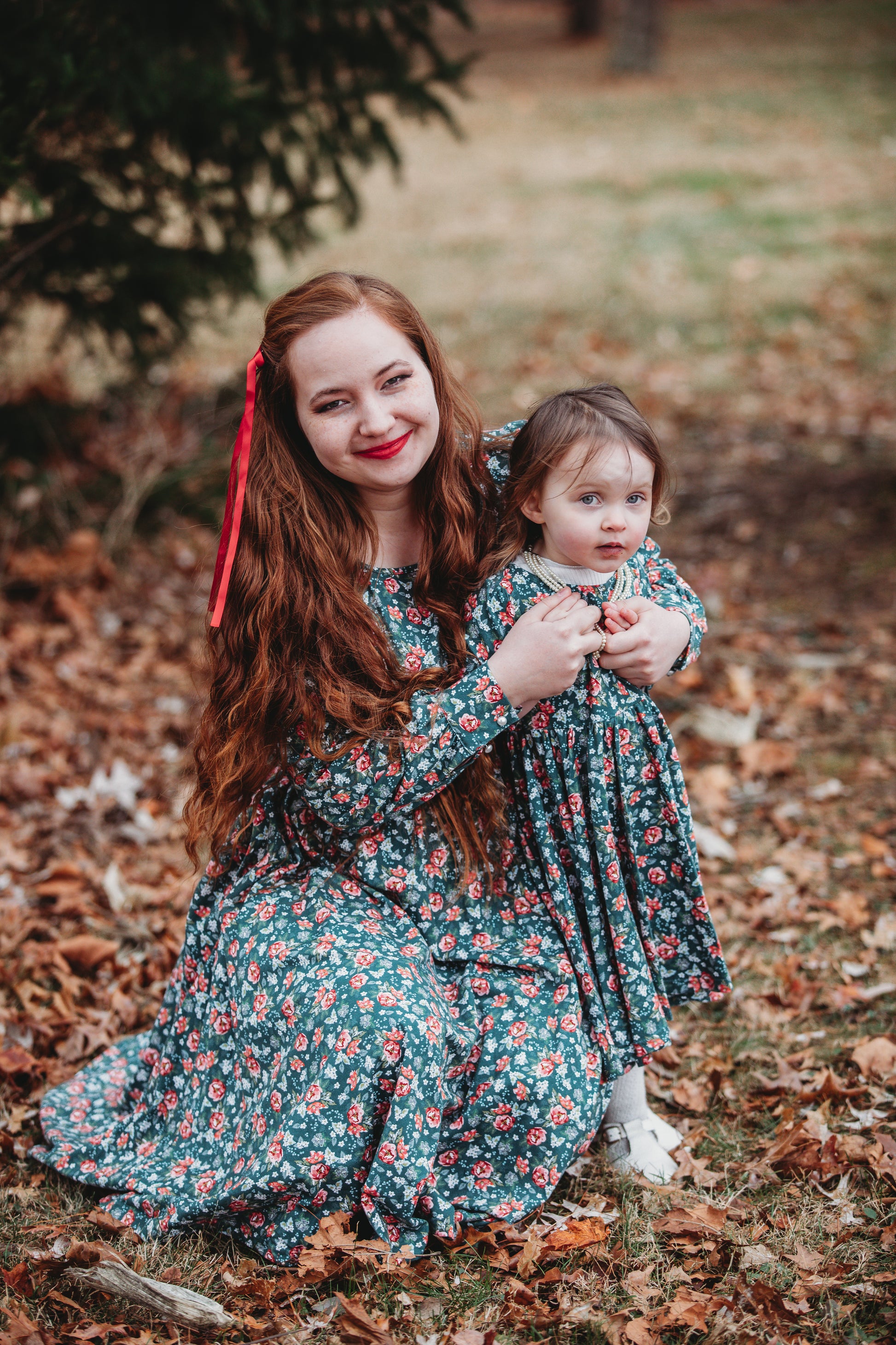 This gorgeous quiescence of Christmas print of green, red, blue, teal, and more, boasts two different styles: the Aleda Dress and Windermere Dress- both adorned with elegance and festive charm. 🤌