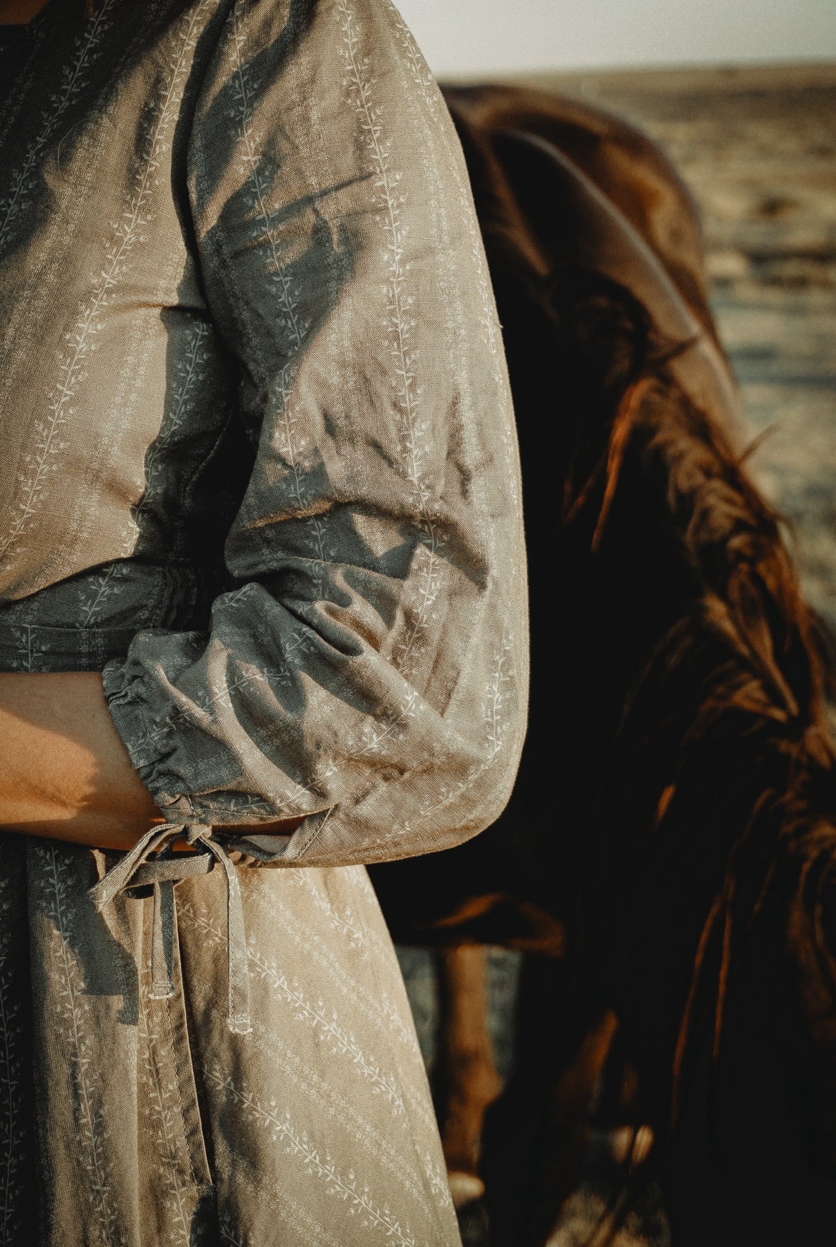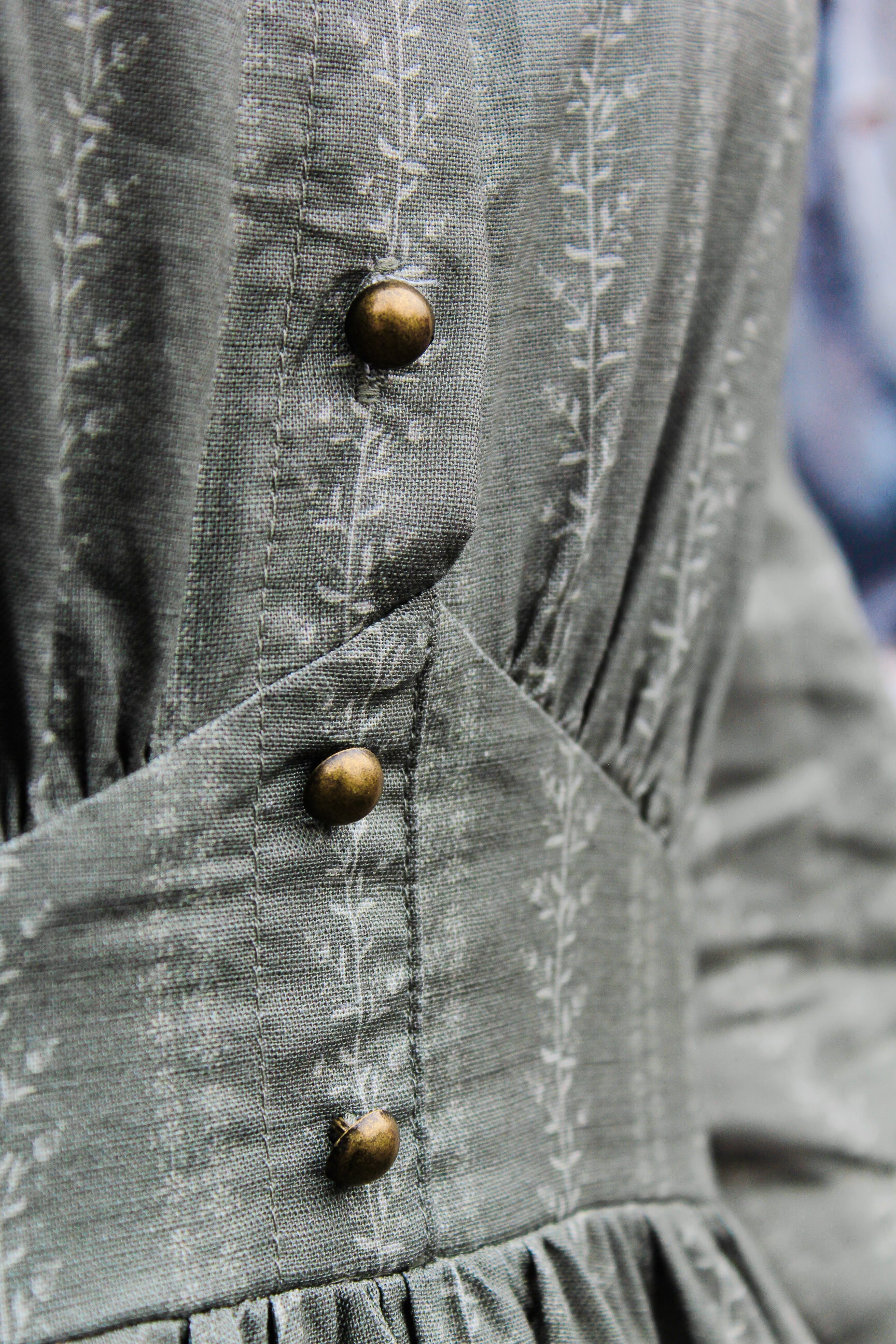 Sweet and understated, Juniper is a gentle nod to vintage simplicity. Designed especially for Super Cute Dresses, its delicate vine stripes are dotted with tiny berries reminiscent of juniper berries, while the dusky olive-green ground mirrors the tree itself — muted, woodsy, and evergreen. 🌲