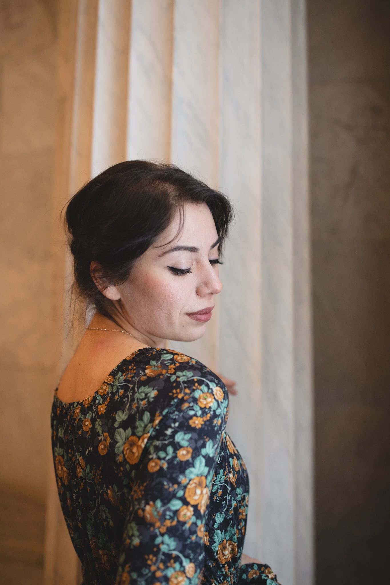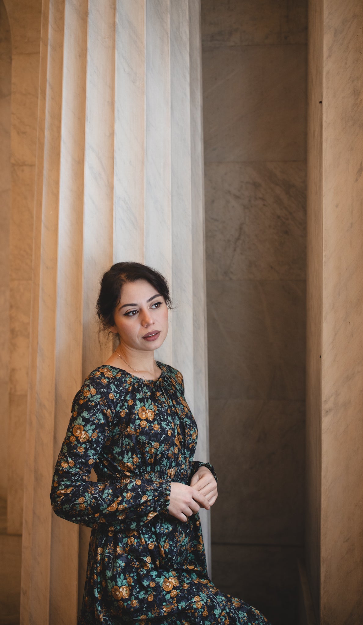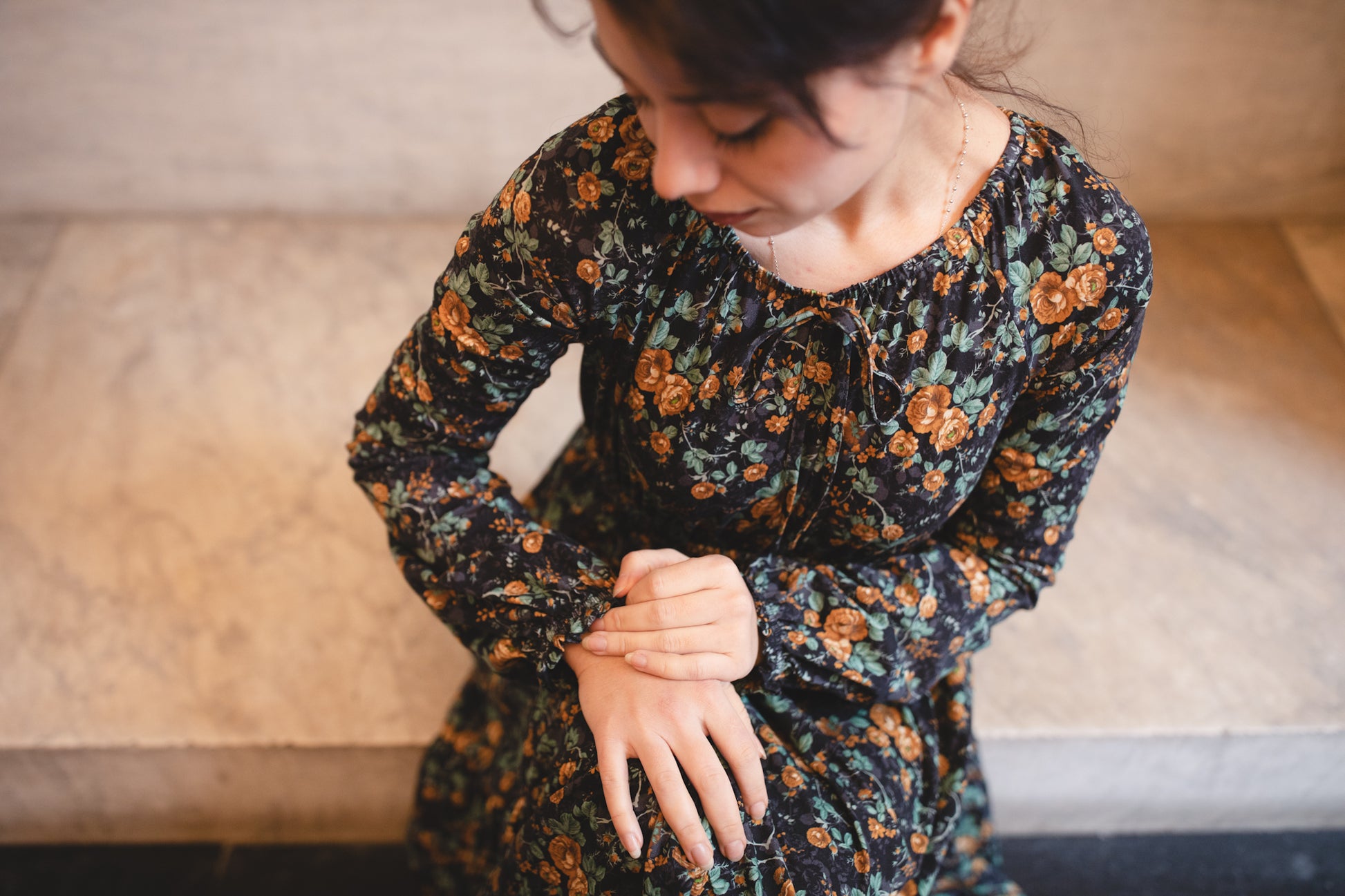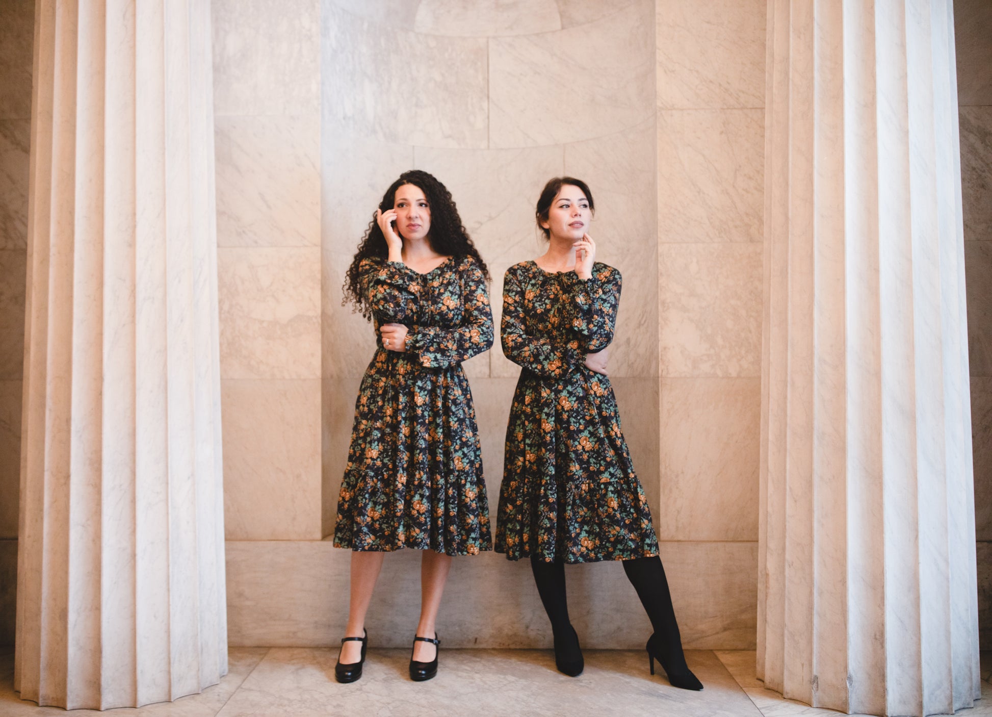 Set against a deep black backdrop, Amber Eclipse blooms with golden florals, stenciled-look secondary background, and soft emerald foliage, creating a rich, vintage-inspired contrast that feels both warm and dramatic. 💛 The jewel-toned palette adds depth and elegance, making this dress an effortless standout for winter days and candlelit evenings alike. 🕯Romantic and refined, it’s a timeless winter floral designed to glow all season long. 🌟